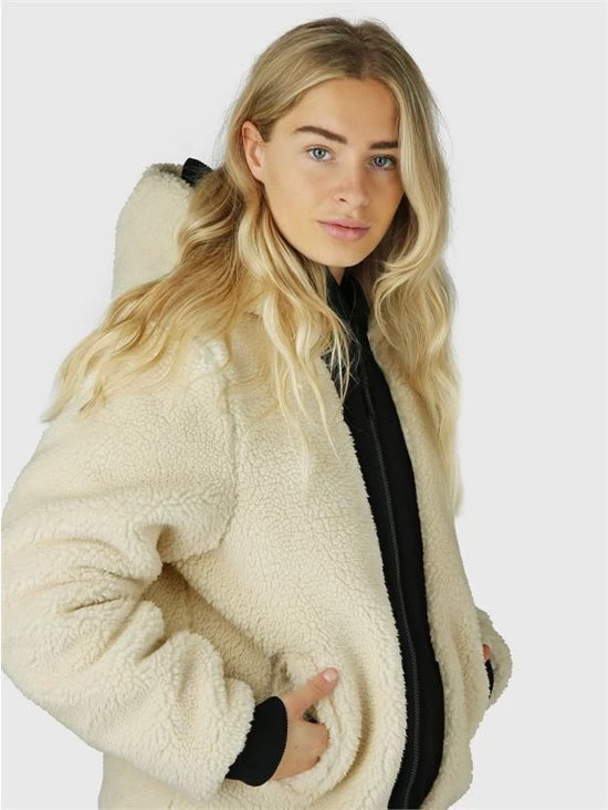 De Chiyo is een bijzonder fleece jasje want hij is reversible. De buitenkant is gemaakt van zacht teddy materiaal en aan de binnenkant heeft de fleece mooi gequilte stof. Het jasje heeft elastische geribde boorden.