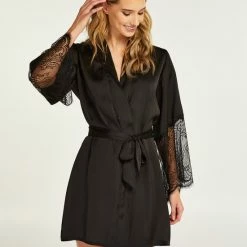 Hunkemöller Dames Nachtmode Kimono Satin – Zwart – Maat XL/XXL
