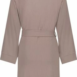 Hunkemöller Dames Nachtmode Kimono Rib – Bruin – Maat XL/XXL
