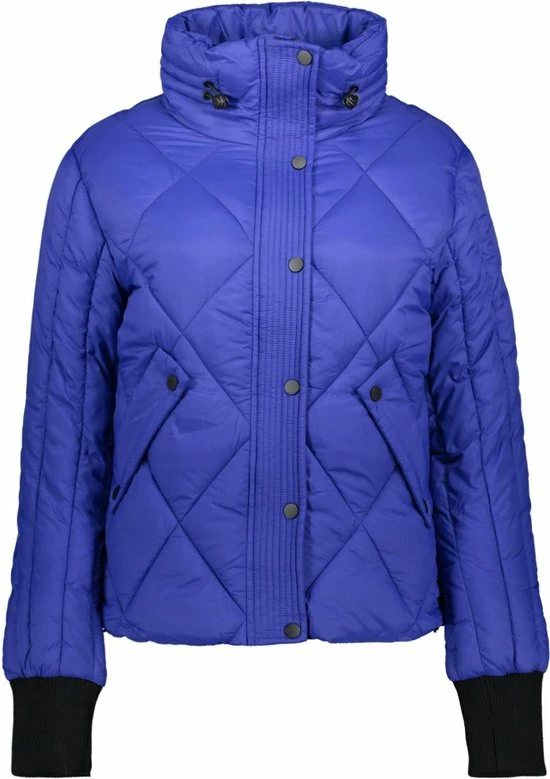 Korte puffer jas van het merk Geisha met doorgestikte diagonale en horizontale vlakken, een ritssluiting en drukknoopsluiting. De jas heeft brede elastieken manchetten die mooi afsteken tegen de kleur van de jas. De jas heeft geen capuchon en twee diagonale steekzakken met kleppen met drukknopen. De jas is gevoerd en heeft een binnenzak. De kraag van de jas kan je nog een beetje extra aantrekken met het getunnelde elastieken koordje. De jas valt tot de heup zodat je lekker veel bewegingsvrijheid hebt in deze jas.100% nylon
