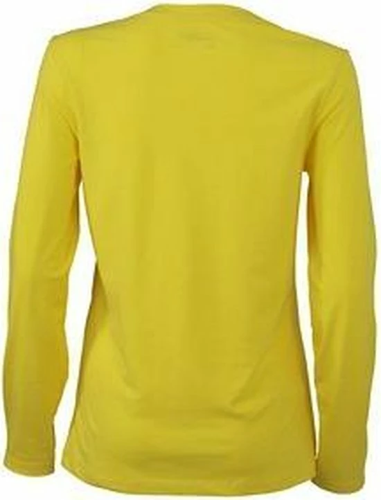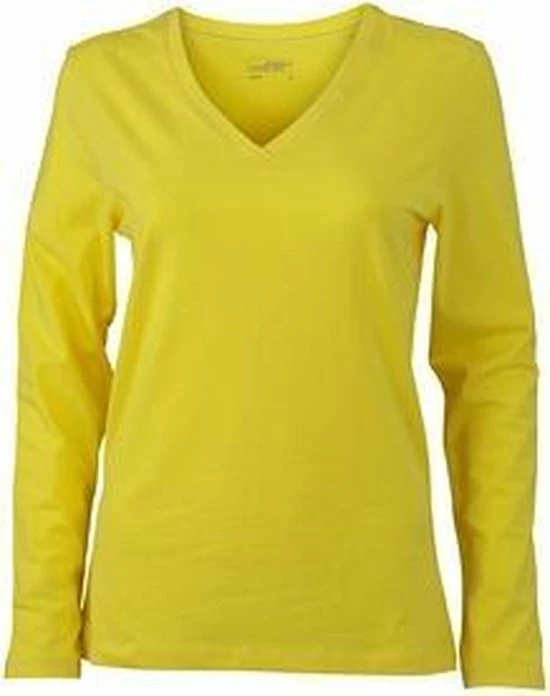 Geel dames v-hals shirt lange mouw. Dames stretch shirt met lange mouw en V-hals. Materiaal: 95% katoen en 5% elastan. Kwaliteit: 160 grams.