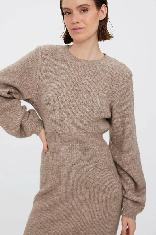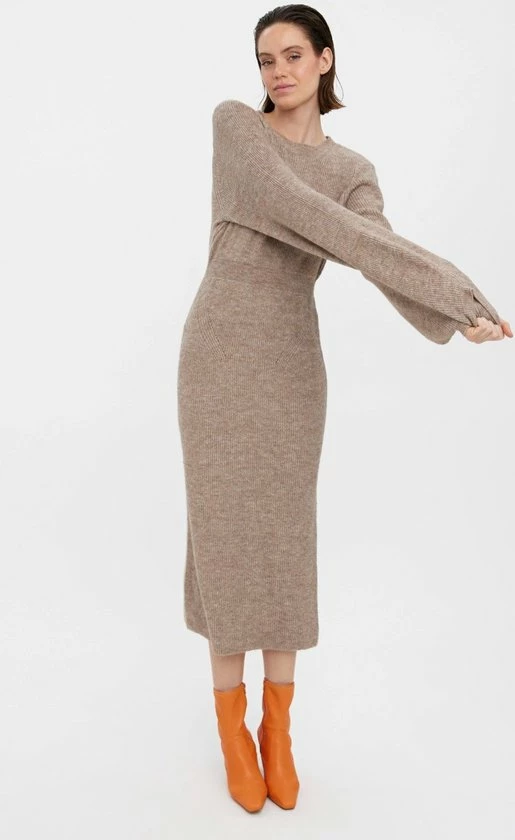 Vero Moda Jurk Vmangalina Ls O-neck 7/8 Knit Dress 10275389 Cobblestone Dames Maat – XL