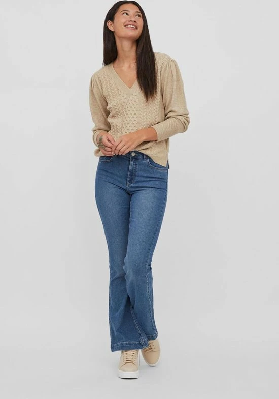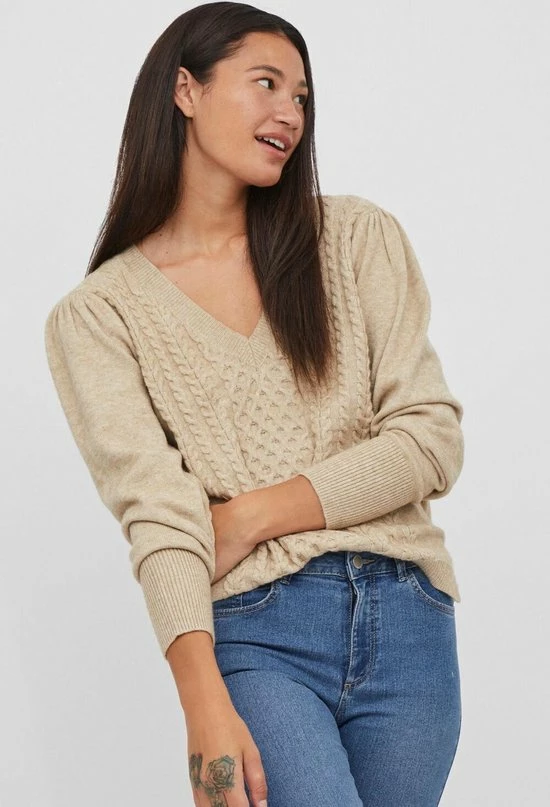 Vila Trui Viril V-neck L/s Cable Knit Top 14076024 Natural Melange Dames Maat – L